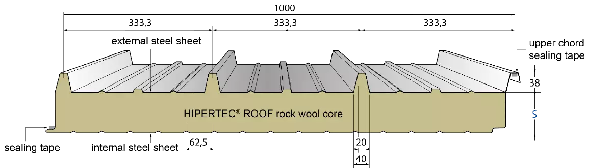 External sheet 0,60 mm (optional: 0,50 mm / 0,75 mm)