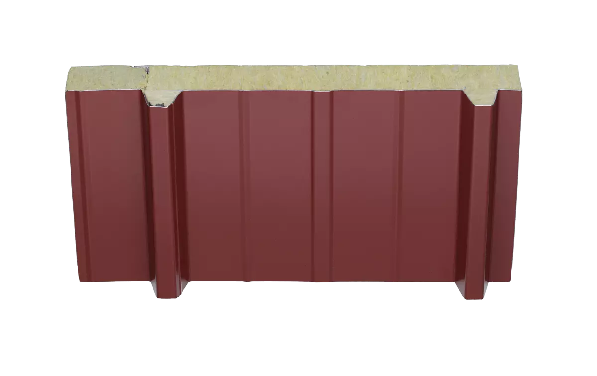 This sandwich panel with a non-combustible insulation core of mineral wool meets today's high demands for fire protection. According to the guidelines for industrial construction, non-combustible insulation materials are obligatory, particularly for large-surface and multi-storey buildings.