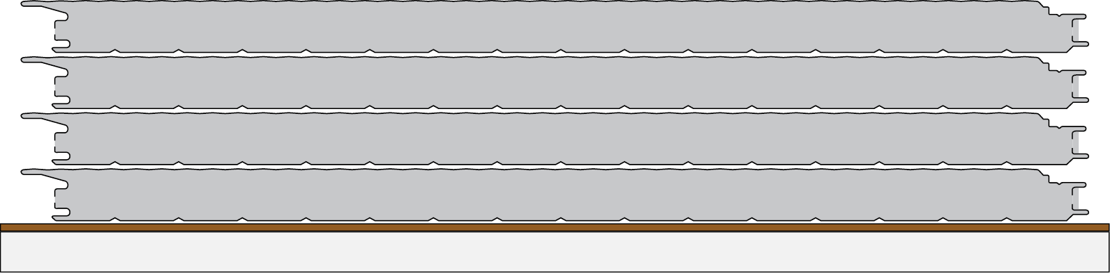For buildings exposed to high wind-suction, horizontal single-span installation is recommended, so possibly needed visible fixing-screws may be covered by pilaster profiles.