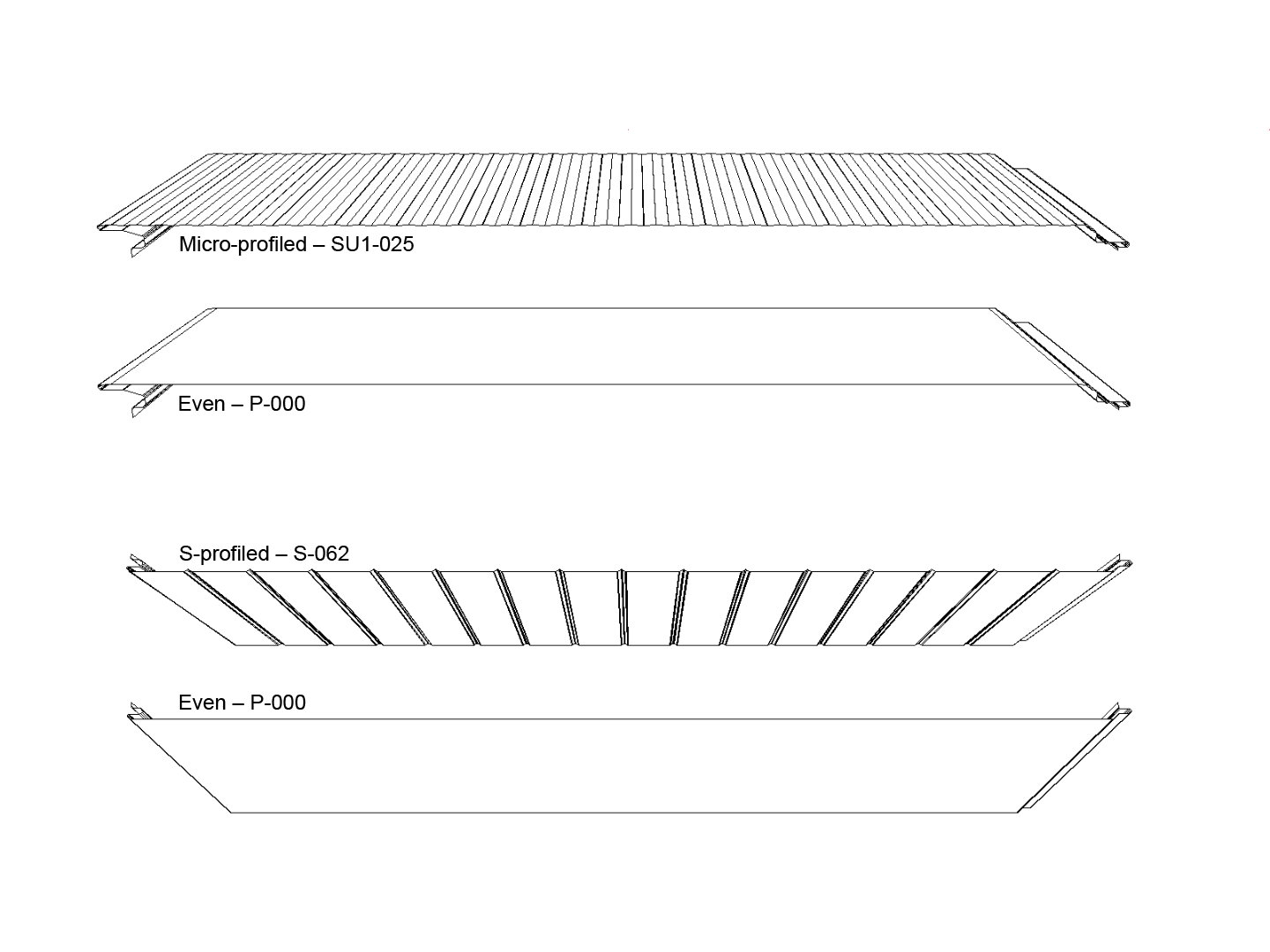 - Standard version with external and internal steel sheet of 25 μm polyester