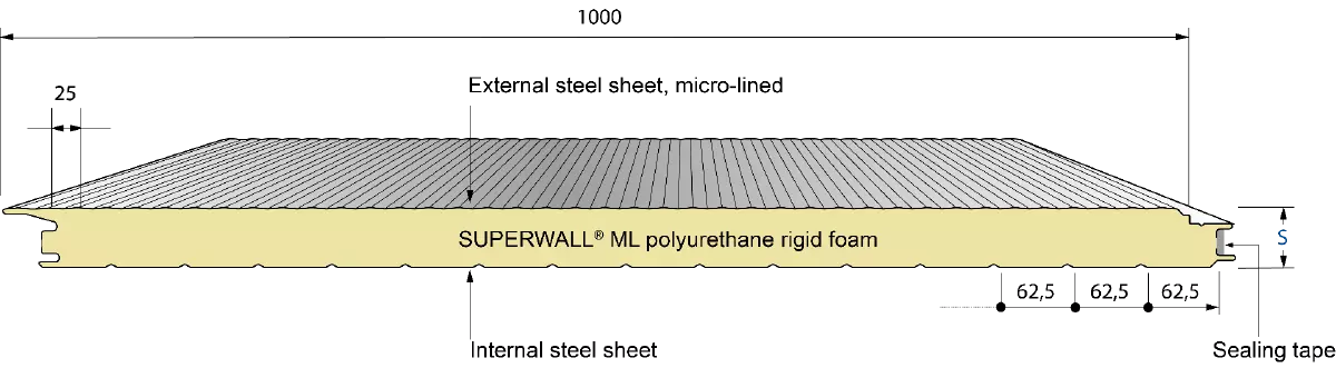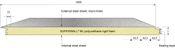 The Superwall® ML sandwich panel with a micro-profiled external steel sheet and a joint-geometry for hidden fixing is suited best to meet today’s sophisticated requirements for high-quality façades. The shear-resistant connection of the cover sheets together with the compressive strength of the insulation core makes wide support widths possible for both vertical and horizontal installation.